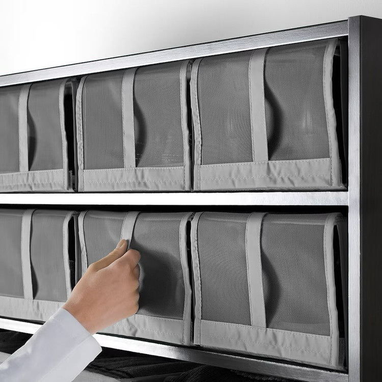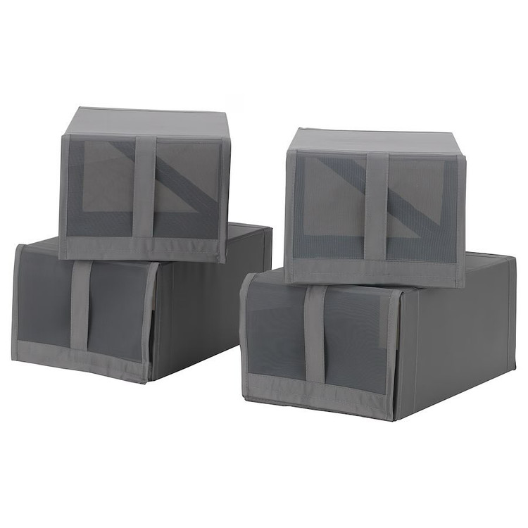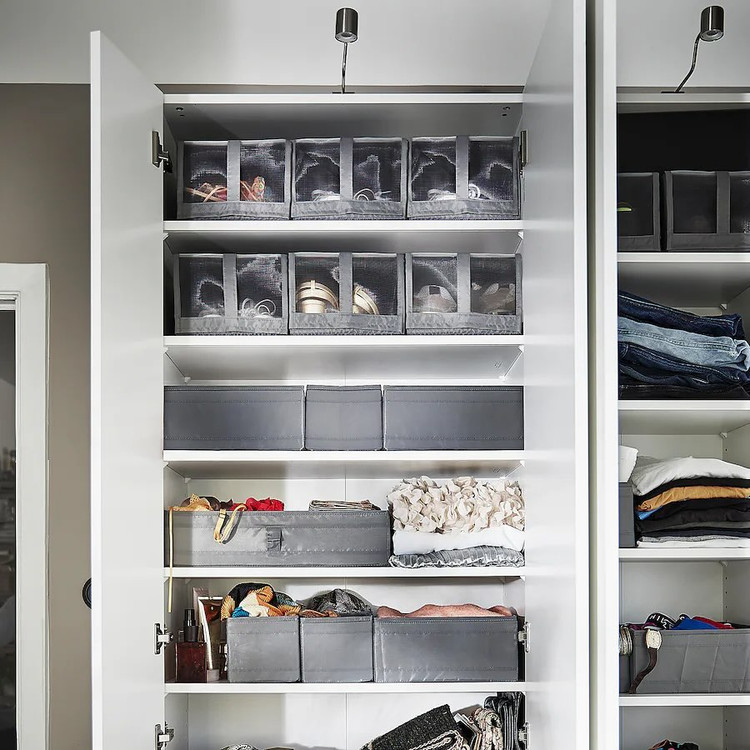 جا کفشی ایکیا مدل SKUBB خاکستری تیره ست ابعاد هر جا کفشی : 22x34x16 سانتی متر جا کفشی ایکیا مدل SKUBB خاکستری تیره بسیاری از خانم ها به کیف و کفش های ست با لباس هایشان علاقه زیادی دارند ,اما این علاقه برایشان درد سر ساز می شود, زیرا دیگر کمدهایشان جایی برای این همه کیف و کفش ندارد . برای اینکه بتوانید نظم خاصی به کمد خود ببخشید و همیشه کفش هایتان در دسترس شما باشد می توانید از نظم دهنده های کفش ایکیا استفاده کنید. ما به شما جعبه کفش ایکیا مدل SKUBB را میدهیم.این جعبه به دلیل حالت تور مانندی که دارد اجازه می دهد, تا هوا در اطراف کفش شما گردش کند و به راحتی می توانید داخل جعبه را ببینید و کفش خود را انتخاب کنید.جنس جعبه کفش ایکیا پلی استر می باشد,با استفاده از پلی استر بازیافتی در پارچه در این محصول، مواد خام جدید کمتری مصرف شده و اثرات زیست محیطی را کاهش داده شده است. در این جعبه کفش به آسانی می توانید در جعبه را باز و بسته کنید و کفش مورد نظر را بردارید.هر چهار جعبه در کنار هم در یک قاب کمد به عرض 100 سانتی متر قرار می گیرند. هنگامی که به جعبه نیاز ندارید و می خواهید در فضا صرفه جویی کنید، به سادگی زیپ را در پایین باز کرده و آن را صاف ,تا کنید.این جعبه را نشوئید, سفید کننده نزنید,خشکشویی و اتو نکنید برای نظافت ان می توانید با یک محلول صابون ملایم آن را پاک کنید. 635000