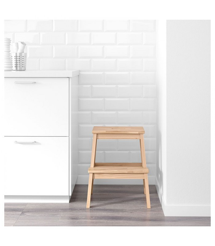 عرض: 43 سانتی متر عمق: 39 سانتی متر ارتفاع: 50 سانتی متر حداکثر وزنی که تحمل می کند : 100 کیلوگرم این چهارپایه ی چوبی ایکیا دستیابی به چیزهایی که در بالاترین قسمت کابینت قرار دارند را آسانتر میکند طراحی فوق العاده زیبا مورد استفاده به عنوان استند گل دارای یک شیار در قسمت رویی که حمل آن را به وسیله ی دست راحت می کند. ساخته شده از چوب راش جامد این چهارپایه ی ایکیا در برابر سختترین استانداردهای ما برای پایداری، دوام و ایمنی آزمایش شده است و تا سالها در برابر استفاده روزمره در خانه شما مقاومت کند. طراح :Nike Karlsson مراقبت : با یک پارچه مرطوب شده در یک پاک کننده ملایم تمیز کنید. سپس با یک پارچه تمیز خشک کنید. برای حداکثر کیفیت، در صورت لزوم پیچ ها را دوباره محکم کنید.