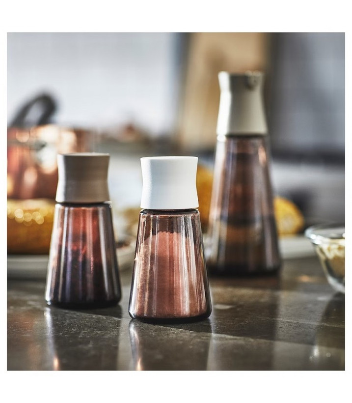 طراحی زیبا و شیشه قهوه ایی این ست نمک دان و یا فلفل پاش ایکیا به این معنی است که شما با خوشحالی آنها را در کنار اجاق گاز و روی میز ناهار خوری خواهید دید.