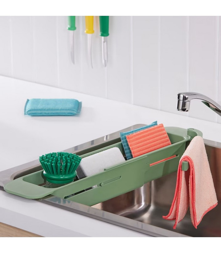 نظم دهنده سینک ایکیا مدل SKOLÄST قابل تنظیم است بنابراین روی انواع سینک ها با ابعاد مختلف می توانید استفاده نمایید.