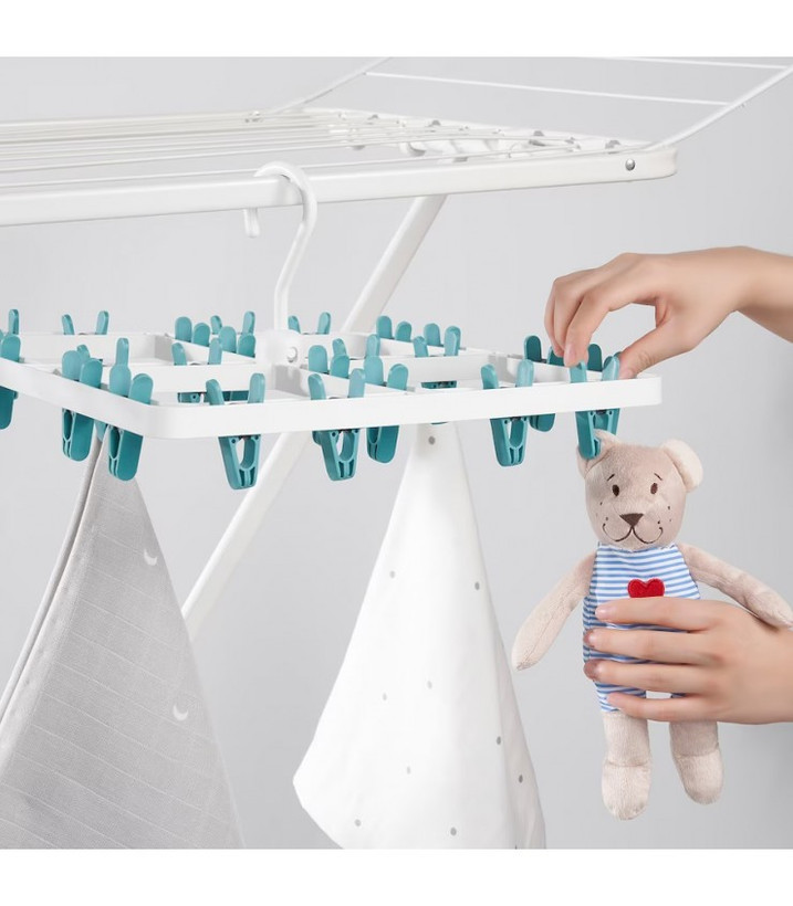 در اینجا شما یک راه حل هوشمند دارید - یک خشک کن آویزان تاشو با 24 گیره لباس.
