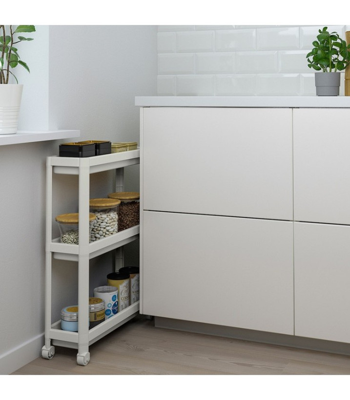 ترولی چرخ دار ایکیا مدل VESKEN با ابعاد 54x18x71 سانتی متر یک ترولی با ساختاری محکم است که می توانید از آن در آشپزخانه ، حمام و یا دیگر فضاهای منزل استفاده نمایید.