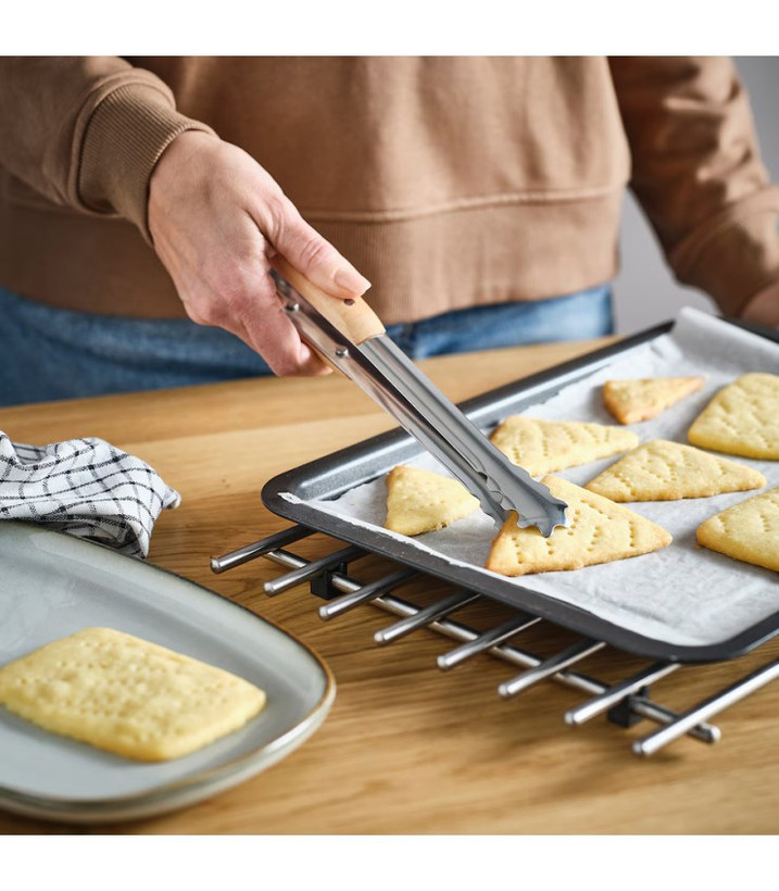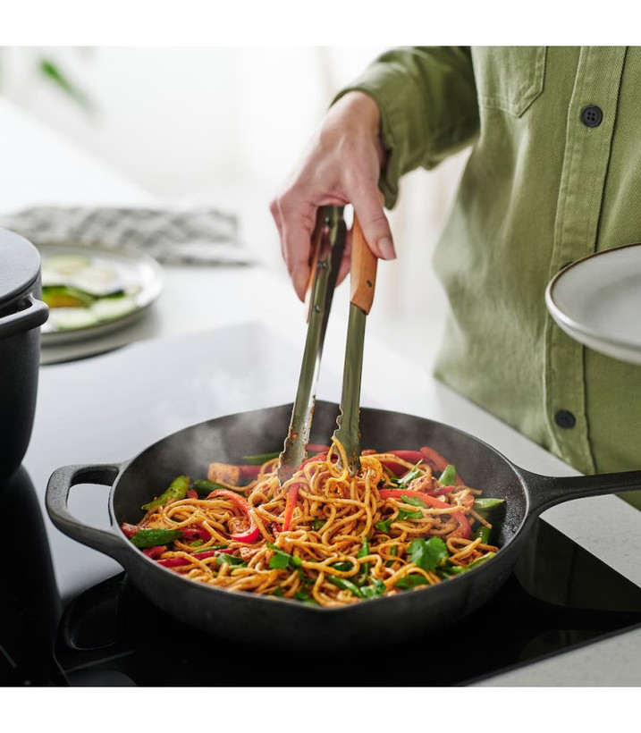 انبر آشپزی ایکیا مدل VARDAGEN با دسته چوبی و تیغه استیل ضد زنگ، مناسب برای پشت و رو کردن مواد غذایی در پخت و پز.