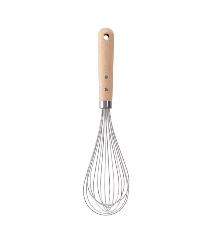 همزن بالونی ایکیا مدل VARDAGEN با دسته چوبی و طراحی ارگونومیک، مناسب برای آشپزی و شیرینیپزی حرفهای.