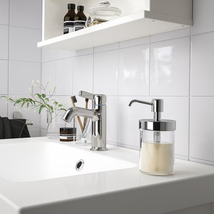 پمپ مایع ایکیا مدل VOXNAN طراحی سنتی در ترکیب با شیشه و جزئیات کروم براق ظاهری جذاب و هماهنگ در حمام شما ایجاد می کند. ارتفاع: 16 سانتی متر حجم: لیتر 618000