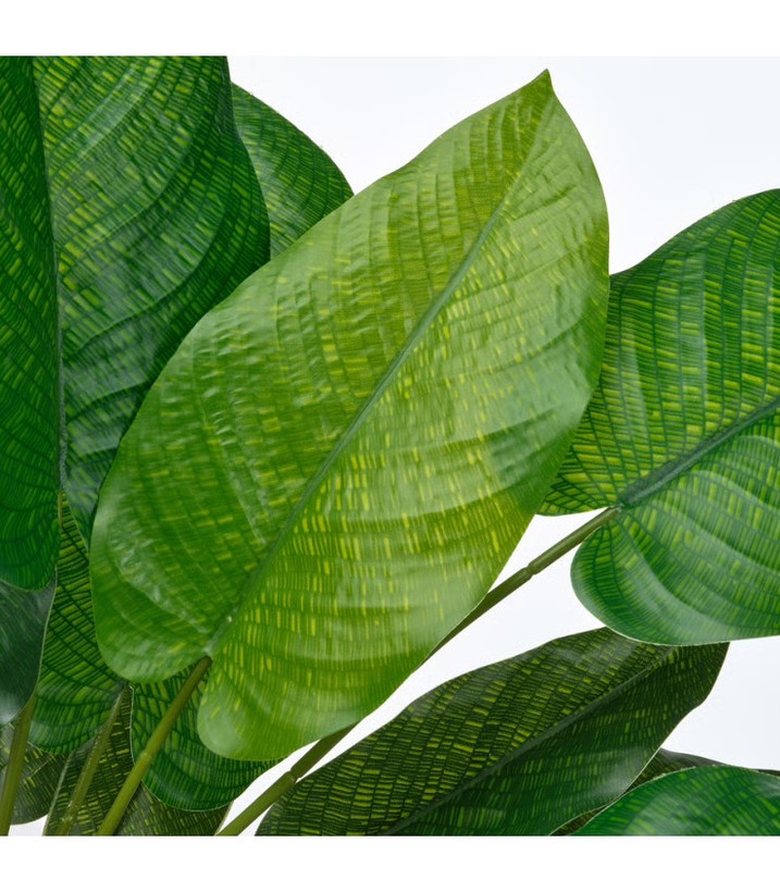 از نظر جنس، این گیاه مصنوعی از پلیاتیلن با حداقل ۵۰٪ پلاستیک برای برگها و ساقهها ساخته شده و گلدان داخلی آن از پلیپروپیلن با حداقل ۷۰٪ پلاستیک تولید شده است. این موضوع نشاندهنده تعهد برند ایکیا به حفظ محیطزیست و استفاده از مواد بازیافتی با کیفیت است.