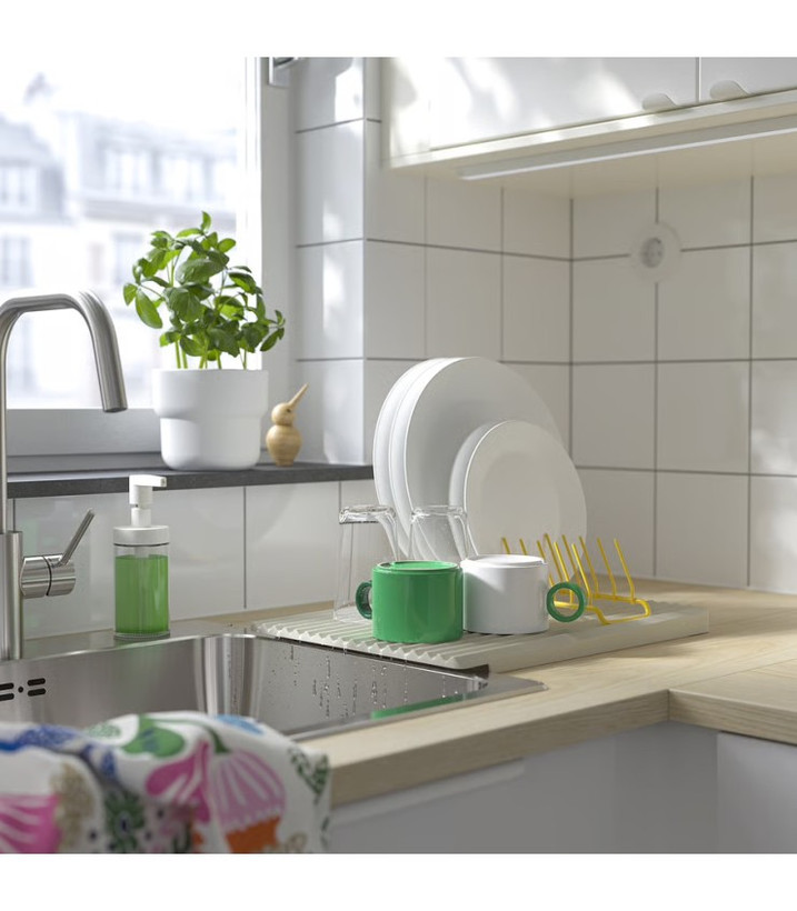 نگهدارنده بشقاب RINNIG ایکیا، رنگ زرد، 28x9x8 سانتیمتر، مناسب برای خشک کردن، سازماندهی و نگهداری بشقابها و درب ظروف، ساخته شده از فولاد و پلاستیک پلیآمید، محصولی کاربردی و با کیفیت از برند محبوب ایکیا.